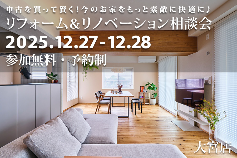LOHAS studio 大宮店にて、12/27(土)-12/28(日)の2日間、[予約制]リフォーム&リノベーション無料個別相談会を開催致します。中古を買って賢く!お得に♪ ちょっと見積りを頼む前にお気軽に相談会へ! ドラマで見るような家づくり・・・。私たちと一緒に、リフォームのお話をしませんか?