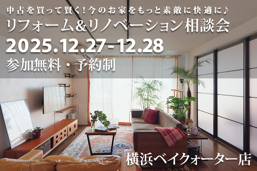 LOHAS studio 横浜ベイクォーター店にて、12/27(土)-12/28(日)の2日間、[予約制]リフォーム&リノベーション無料個別相談会を開催致します。中古を買って賢く!お得に♪ ちょっと見積りを頼む前にお気軽に相談会へ! ドラマで見るような家づくり・・・。私たちと一緒に、リフォームのお話をしませんか?