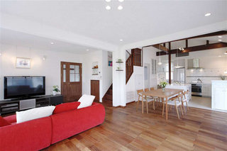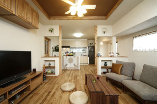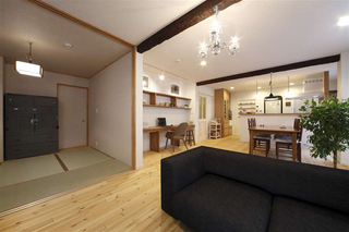 購入した中古マンションを自分達らしいセンスでリフレッシュするためリフォーム。広がりを出すために和室を無くし,面積を広げ、キッチンの吊戸を撤去、物理的にも視覚的にも広さをアップ。天井はあえて高さを下げ、ダウンライトやスピーカー、TVボードの造作と共に配線に悩まされずにオーディオ機器を楽しめる工夫とモ…