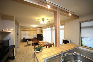 入り組んだ動線を改善し、自然素材を取り入れ子供の気配を感じられる間取りにしたい。 そんなご希望を叶えるためにスタートした、Y様のリフォーム。 若世帯とお母さまの生活スペースのどちらも明るくなり、一緒に料理をする機会も多い為、大勢で作業可能なキッチンカウンターを造作し開放的なキッチンになりました。 親…