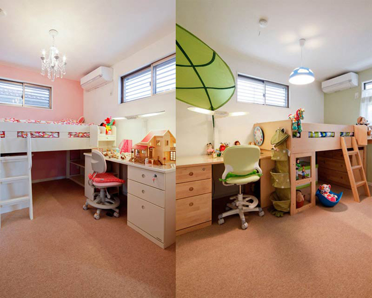 お子様の部屋や水廻りは少し高い位置に窓を設置することで、防犯やプライバシーの面を考慮しつつ、部屋にもたっぷりの光を取り入れることができます。