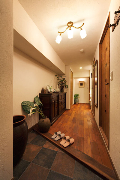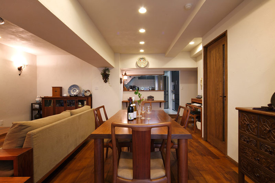 「家具蔵(カグラ)の家具をたくさん置きたいので、家具が引き立つシンプルな内装に」とのご要望に併せ、床は幅広のゴールデンチークに。