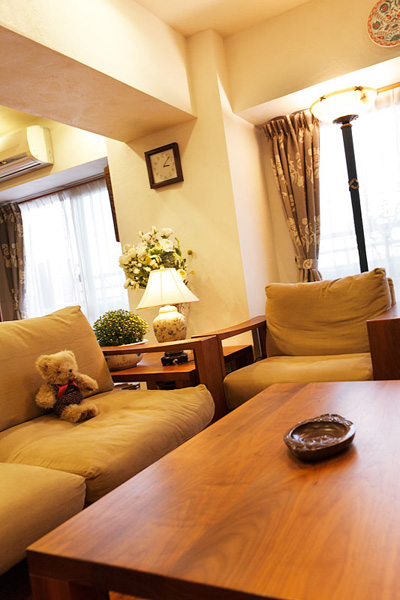 圧迫感を解消する為、天井を全体的に上げ、ダクトなどの配管スペースは折上げ天井や間接照明スペースとして利用。寝室にはウォークインクローゼットを設け、入口建具部分は表情のあるR型に加工しました。