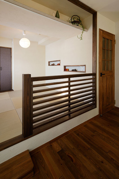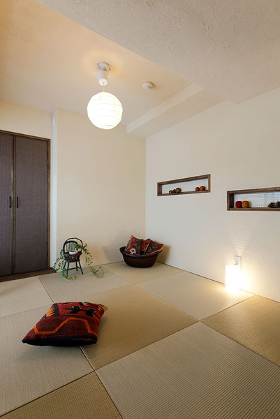 お客様を招くのがお好き、インテリアもお好きななご夫婦でしたのでいろんな集いの形、しつらえを楽しめるよう、様々なシチュエーションをプランに盛り込んだ。小上がりの和室はお子様のお昼寝スペース、プライベートな集い、お客様の寝室等フレキシブルな用途に。
