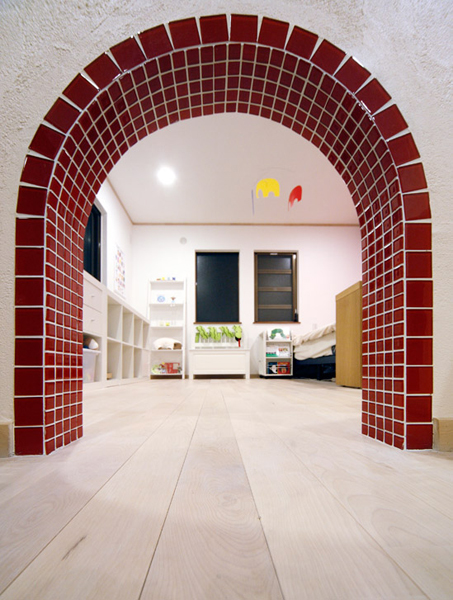 壁にもハイハイして通れるトンネルを作り、お部屋を自由に楽しく行き来出来るようにしました。