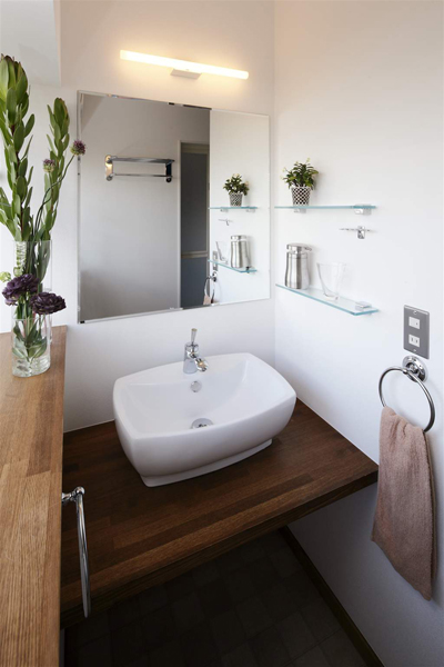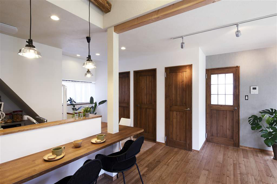 過去に増築をしていたという経緯もあり、構造部分も含めての設計になっています。耐震の為の壁は収納や間仕切りとして計画して、広い対面キッチンのLDKを実現。