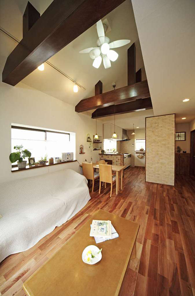 天井を取り払い吹き抜けにして、開放感を演出しました。