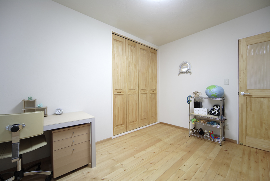 壁と天井には全て珪藻土を施工し、床には無垢フローリングを。調湿効果のある自然素材を多用し、いつでも快適な空間になりました。珪藻土が室内の湿度を調節するので、夏場でもエアコンをほとんど使うことなく快適に過ごせます。また、断熱効果もあり、冬は、1Fリビングは石油ストーブ1台で過ごせ、冬の間に購入した灯油の量は、2缶(1缶18リットル)のみとのことです。