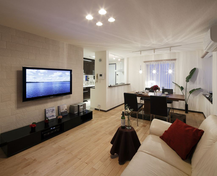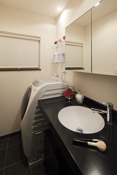 「とにかくスッキリと、モダンな空間」がご希望だったので、自然素材の美しさを活かし、デザインはシンプルさを追求。特にテクスチャーと色にこだわり、床材は無垢フローリングの中でも滑らかで木目の少ない白みの樺桜、建具や木部は黒みの強い色でコントラストをはっきりとさせて、モダンでワンランク上の優雅さを演出しました。
