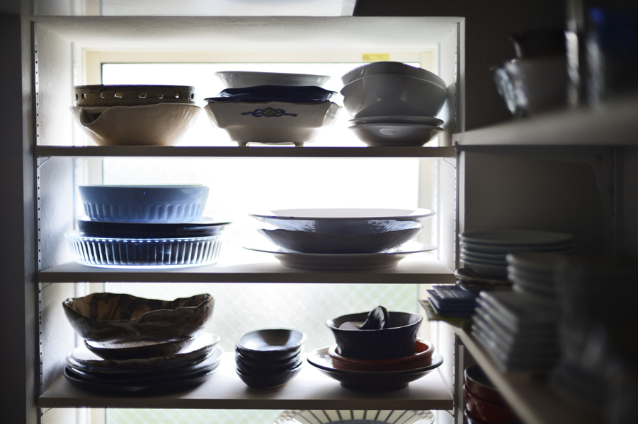 お気に入りの食器が飾れるオープン棚も造作され