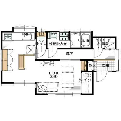 フロアゾーニングキッチンとリビングダイニングを圧迫感なく間仕切ります。