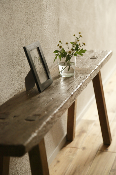 好みのデザインイメージ通りのデザインを目指し、板に加工を施しました。羽目板はヴィンテージの風合いです。