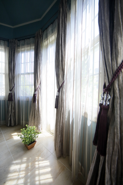 NOOKはカラークロスとこだわりのカーテンでより印象的な空間に仕上りました。 オリジナル ステンドグラスから届く光彩は 日々姿を変える美しい光景。 「いつまでも綺麗を保ちたい」 そんな気持ちにさせるデザインコンテンツです。