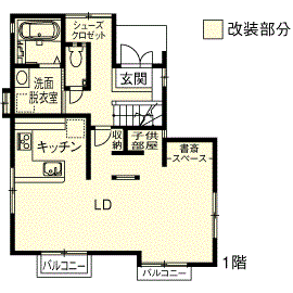 子育ても、お子様も楽しくなるLDKへと間取りを大変身!1畳の子ども部屋もポイント