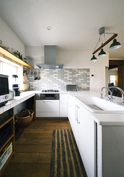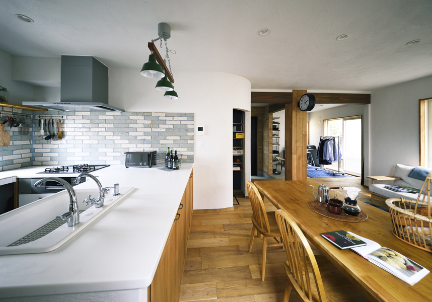 キッチンからはLDK全体がほぼ見渡せる 子育て向きの「見守り」プランで間取りを設計しました。 リビングの傍らには 多目的スペースをご用意。 お子様との遊び・家事仕事・趣味等に幅広くご活用いただけます。見た目にも悠々とした生活空間は空気環境も良好。 無垢フローリング・珪藻土など自然素材を使い、小さなお子さまが素で触れる建材の安全性にも配慮しています。 デザイン性も使い勝手も丸ごと叶える 大人も子どもも楽しめる空間づくりを追及して 新しいU様邸が誕生しました。