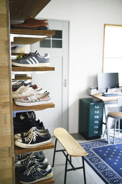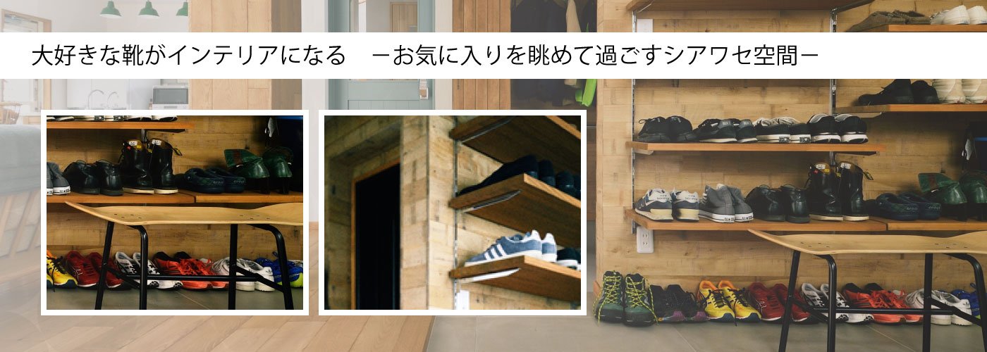 ここは靴専用のワードローブ。 「行ってきます」その前に今日一番のコーディネートを お気に入りの中から探し・選べる場所。風通しの良い棚にディスプレイされた 靴のコレクションは 色もデザインも個性にあふれた素敵なインテリアに。コンディションもひと目でわかり 実用的です。
