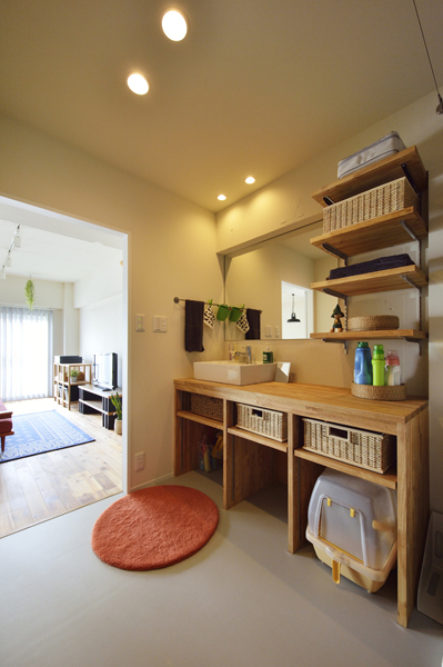 キッチンや洗面室には出入り口を2方向造作し 動線改善を向上しました。 直進するだけで回遊できる動線は 無駄な動きがなく 移動がスムーズ。 一筆書きの室内通路で 家事効率がアップします。