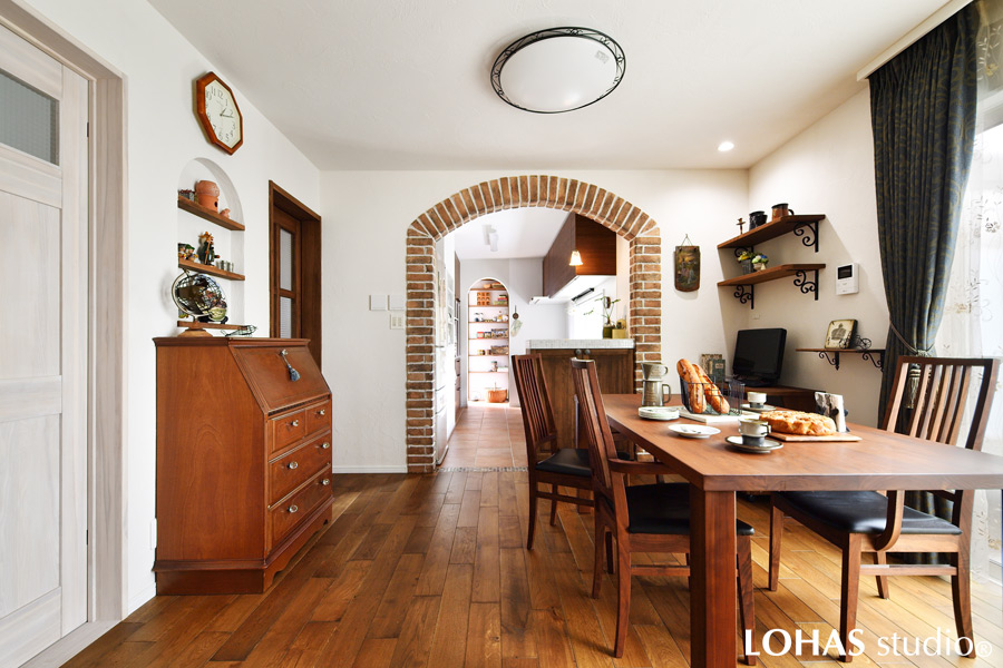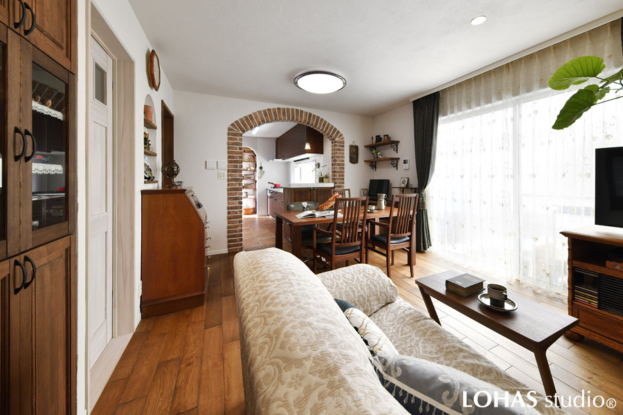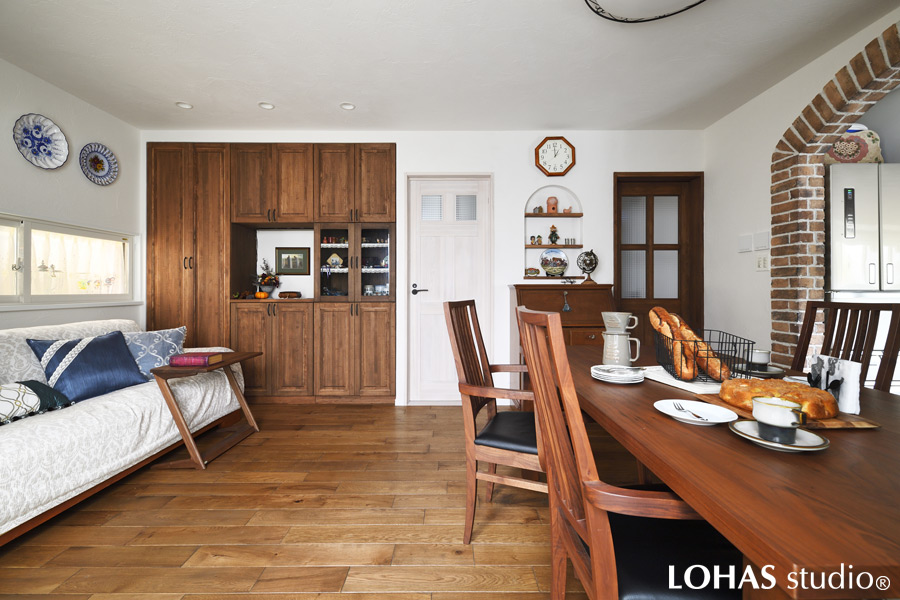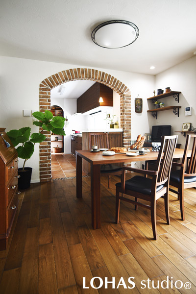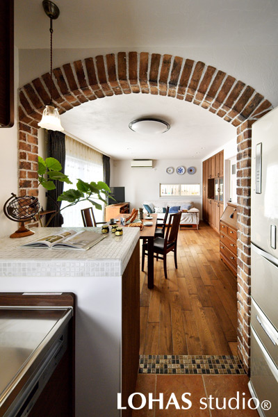 今回のリフォームではブリックタイルや落ち着いた色合いの無垢材を選んで、ヨーロピアンスタイルにデザインしました。