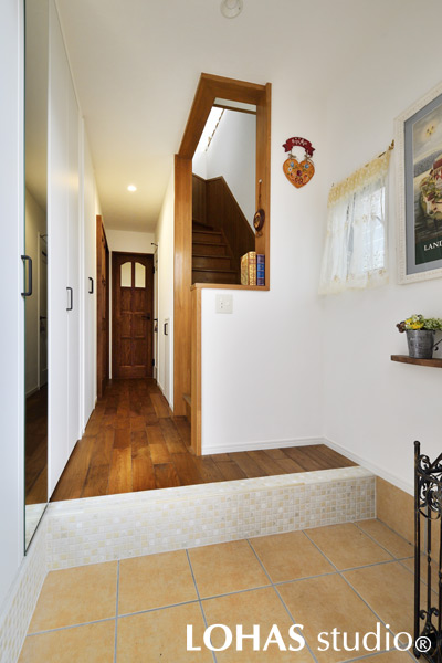 玄関先の廊下には壁一面の収納を新設。家族全員分の靴だけでなく、上着まで収まるだけの容量があります。
