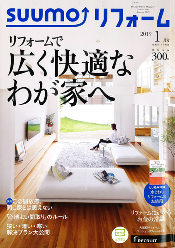 2018年11月16日発売の「suumoリフォーム 全国版 1月号(リクルート社)」で、LOHAS studioの事例が紹介されました。LOHAS studioが手がけるリフォームが多数掲載…
