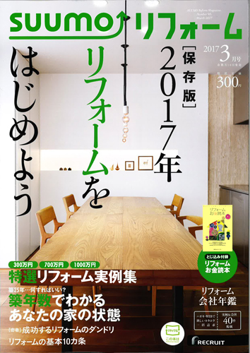 2017年1月30日発売の「SUUMOリフォーム首都圏版 SPRING.2017(リクルート社)」で、東京都 I様邸の事例が紹介されました。 今回のSUUMOリフォーム 首都圏版は「…