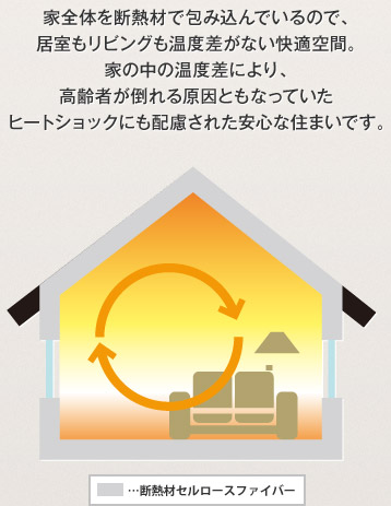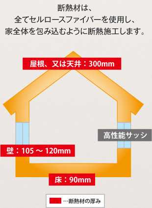 断熱性を向上させると、少ないエネルギーで夏は涼しく、冬は暖かく過すことができるようになり、エネルギー消費量を大幅に削減することが可能です。