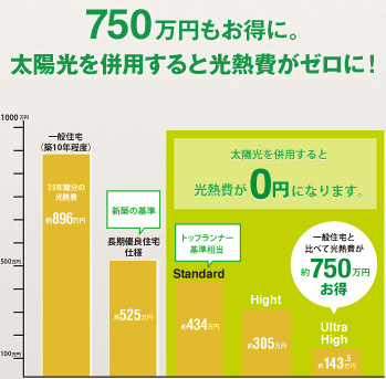 プラスオプションとして、太陽光発電システムで新たなエネルギーを創りだし、よりエネルギーに頼らない住環境を実現することが可能になります。
