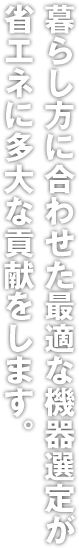 暮らしに欠かせない給湯システムなどにおいては、単に性能だけで判断するのではなく、各地域や設置場所なども考慮することが重要になります。さらに、お客様の家族構成や暮らし方も考慮し、最適な給湯システムをご提案いたします。