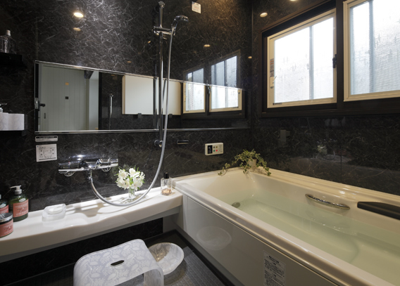 伊豆若草石など素材にこだわった温泉旅館風の浴室や、デザイナーズ物件のようなスタイリッシュな浴室も実現可能です。