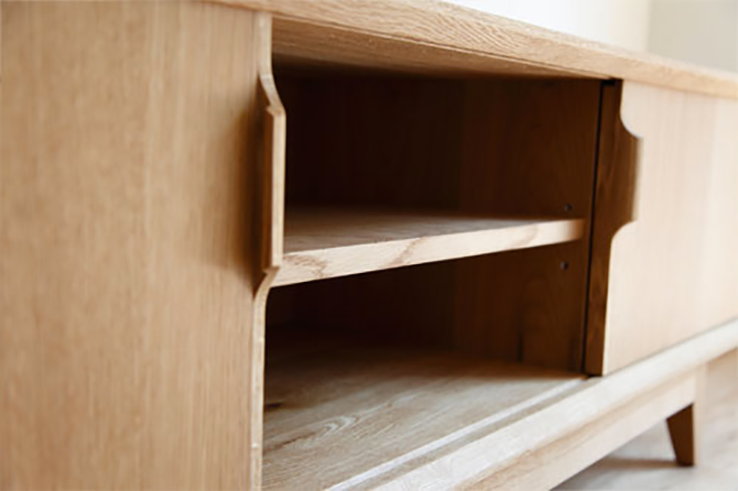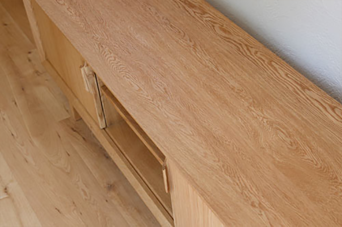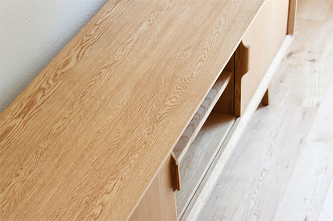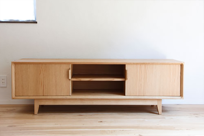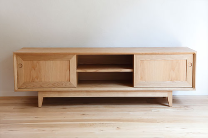 TVボード ①幅1350-1600×奥行き450×高さ500 ②幅1601-1800×奥行き450×高さ500 price:①403,760yen(税抜) ②445,900yen(税抜) Wood material:オーク材