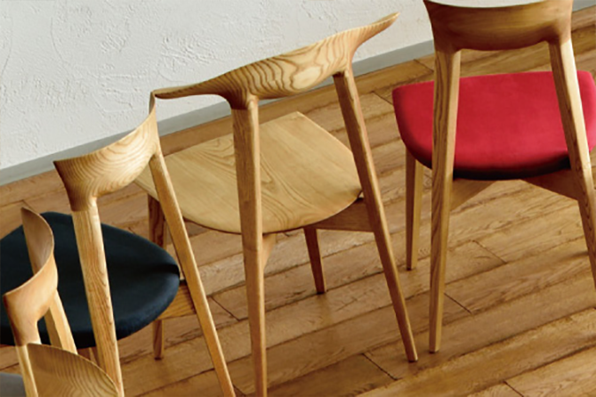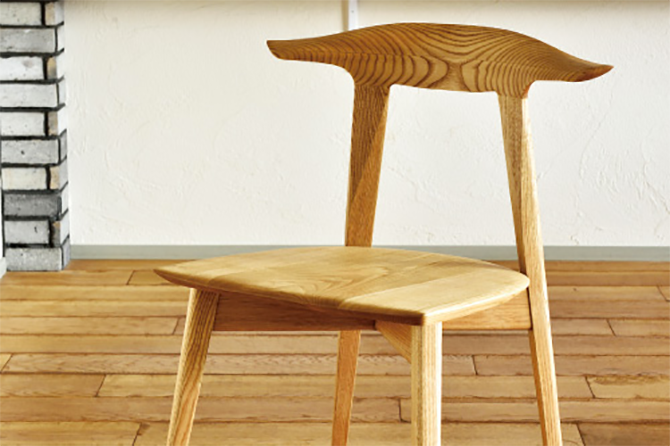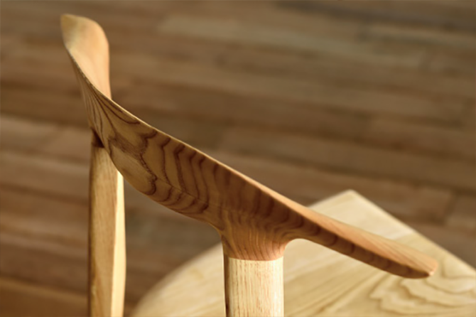 オリジナル椅子(アームあり) 幅450×奥行き750×高さ750x座高420 price: 座面 ウルトラスエード(人工皮革) 104,860yen(税抜) 無垢 116,620yen(税抜) Wood material:(国産)栗