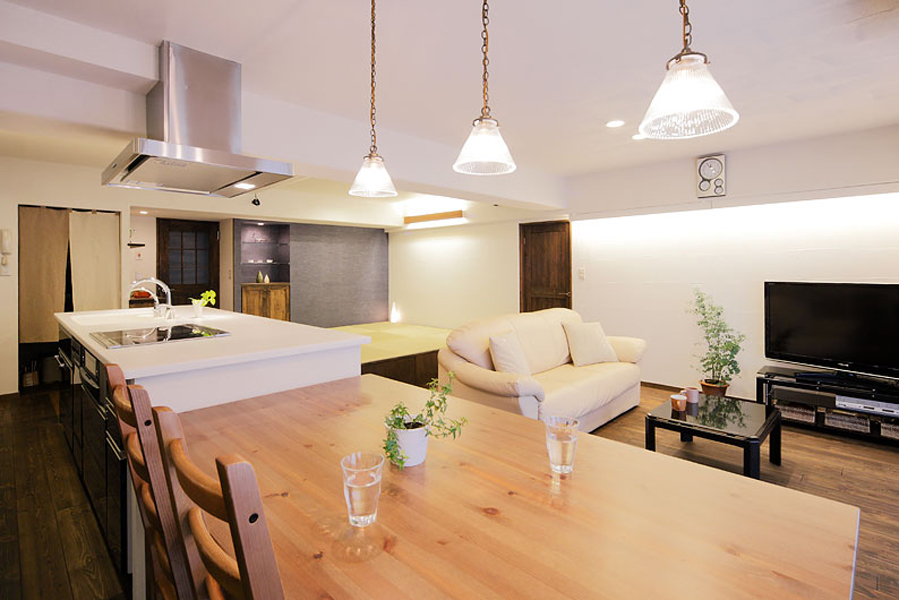 お子様も見渡せるようなアイランド式キッチンへのマンションリフォーム。