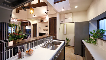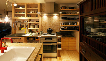 日本人のDNAに刻み込まれた風景は、なぜか癒しと落ち着きをもたらせてくれる空間。 品格のある美しさや風格のある伝統和風は、四季折々の日本の美を感じさせてくれます。オクタでは、キッチンにも天然素材を使用し、システムキッチンでも、囲炉裏等が似合う和風テイストに。隣接するリビングには伝統的な和室や床の間・土間など素材とデザインにこだわり、日本の伝統的な住文化を現代の暮らしにアレンジしたキッチンリフォームをご提案いたします。