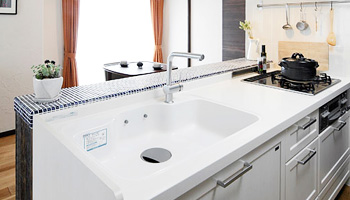 吊り戸棚をつけずにシンク上をオープンにしたタイプになります。デザイン性・機能性共に兼ね備えています。