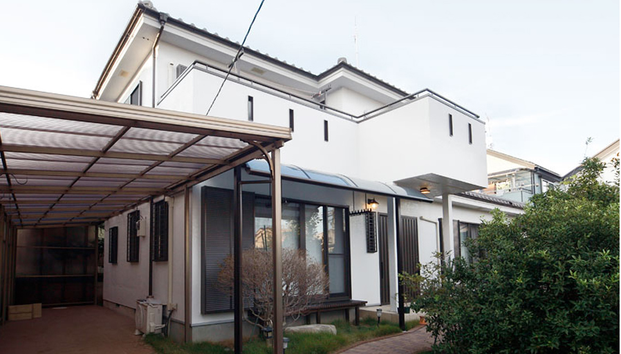 外装も外壁塗装を行い白く美しいお家になりました。 2階のバルコニー部分は大幅に増築しましたものです。さらに、断熱サッシを採用するなど、住宅の基本性能も高めました。