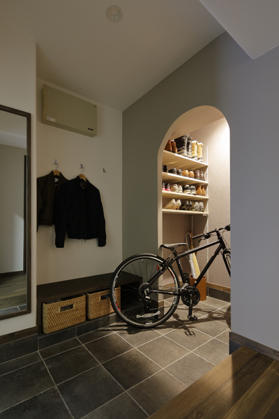 しかし、収納スペ―スを大きくしたことで玄関が圧迫され、結果として窮屈な印象になってしまうことも。玄関のそばに使っていない部屋やスペースがある場合、思い切ってシューズインクローゼット(シューズインクローク)にしてしまえば、靴や傘以外にも自転車や子供の玩具などを置くことができて便利になります。
