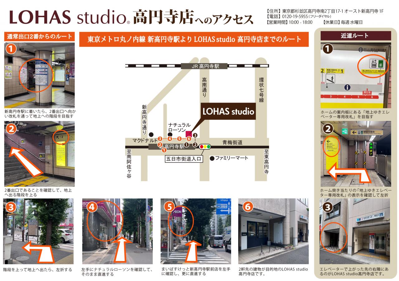 | 交通案内 | JR線 高円寺駅下車 南口より徒歩14分 東京メトロ丸ノ内線 新高円寺駅下車 通常出口2番より徒歩2分 ★詳しいアクセスマップはこちら |