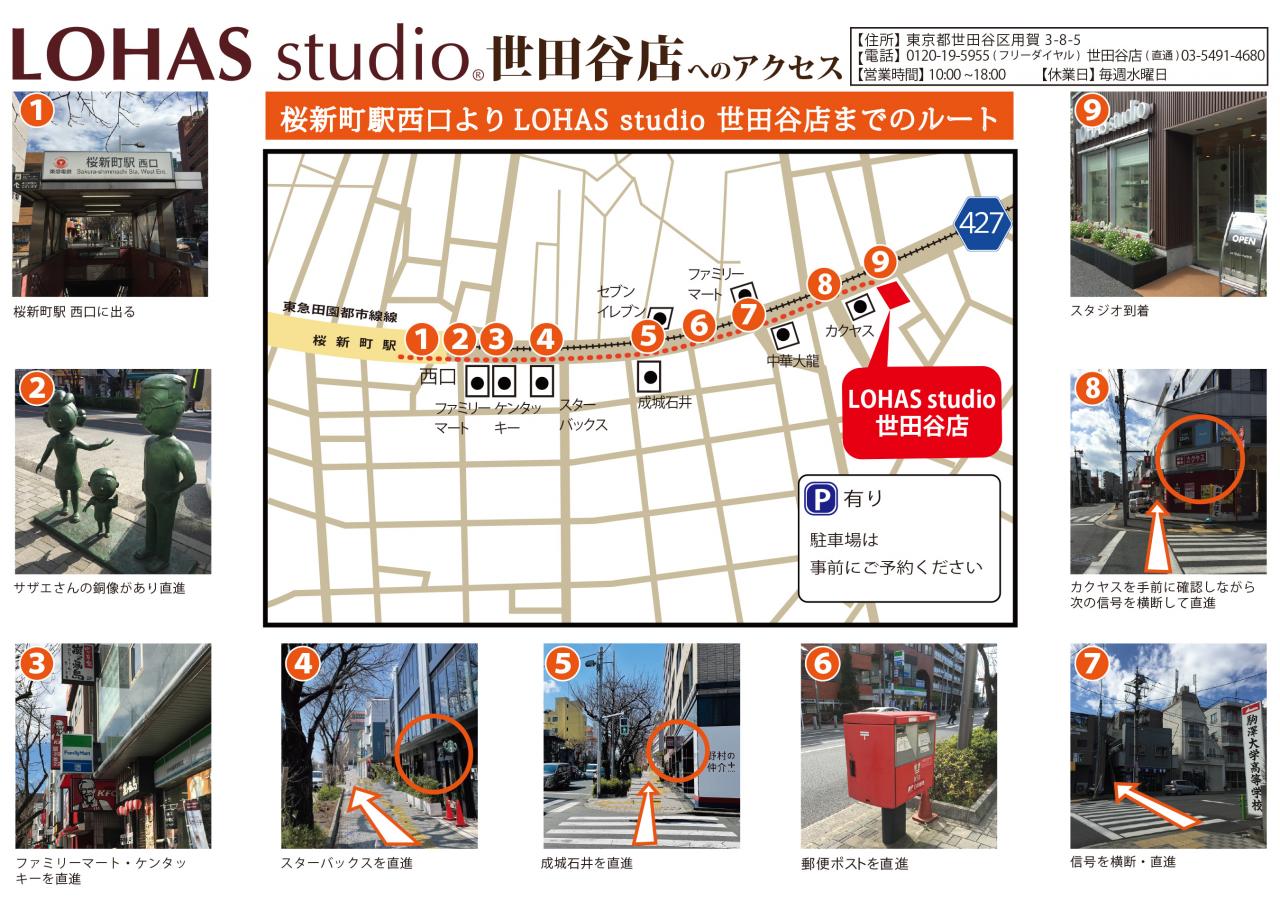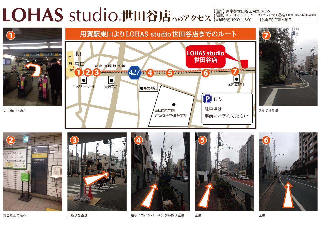 | 交通案内 | 桜新町駅下車用賀方面へ徒歩8分:桜新町駅下車、東急バス・成城学園前駅行き「桜新町2丁目」下車、用賀駅方面徒歩2分 ★詳しいアクセスマップはこちら ◆用賀駅からのルート ◆桜新町駅からのルート ◆パーキングまでのルート |