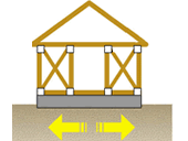 地震などの揺れを分散し、吸収という考え方で、建物が受ける揺れを、独自の衝撃吸収力と高剛性をもって低減させます。