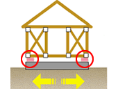 地震波が建物にそのまま入らないよう、基礎部分にゴムやボールなどを入れるなどして建物と地盤を切り離すことで大地震の振動をゆったりとした揺れに変える工法です。