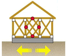 GVAダンパーは筋交いを活用しているため、単なる力比べでも非常に大きな耐力を有しています。加えてダンパーの性能で、大地震のエネルギーの3分の1をかわすことができるため、老朽化した建物でも大地震に倒壊しないようにすることができます。