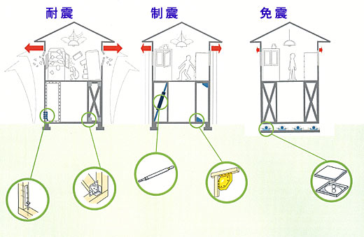 地震に抵抗する技術には3つの方法がある。建物をとにかく頑丈につくって地震に耐える耐震。