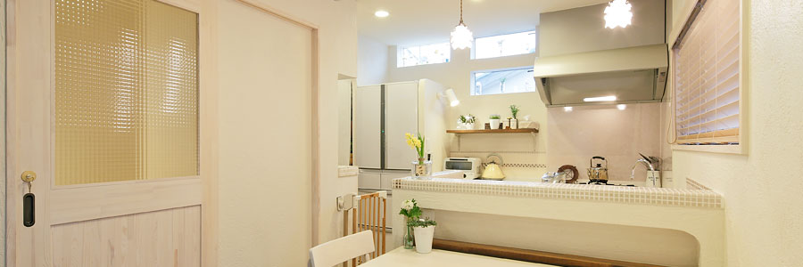 お母さまから住まいを受け継ぐことを機に、ご自分達の生活に合わせた住まいにリフォームしました。間取りを変更したため、開口部にJ耐震開口フレームを用いて耐震補強を行いました。