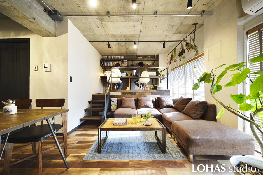 M様邸のリフォームは ご購入された中古マンションの『RC造』という特性を全面に活かし コンクリートの風貌に温かみある自然素材が程よく融合したヴィンテージスタイルに完成しました。