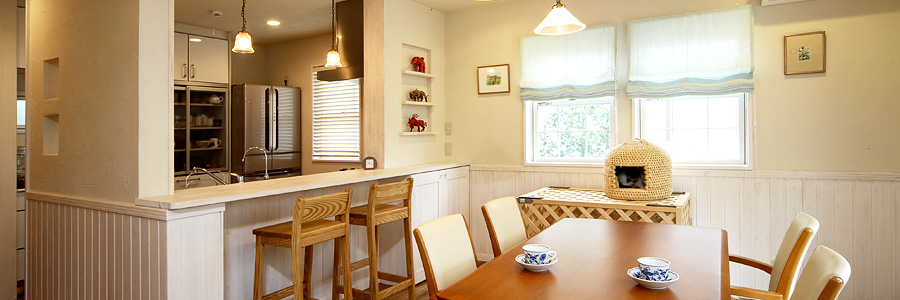 犬3匹と猫6匹と暮らすNさん夫婦。ご夫婦とペットが一緒に、快適に暮らせるように戸建全面リフォームしました。ペットの健康を考え、無垢材や珪藻土などの自然素材を使用しています。